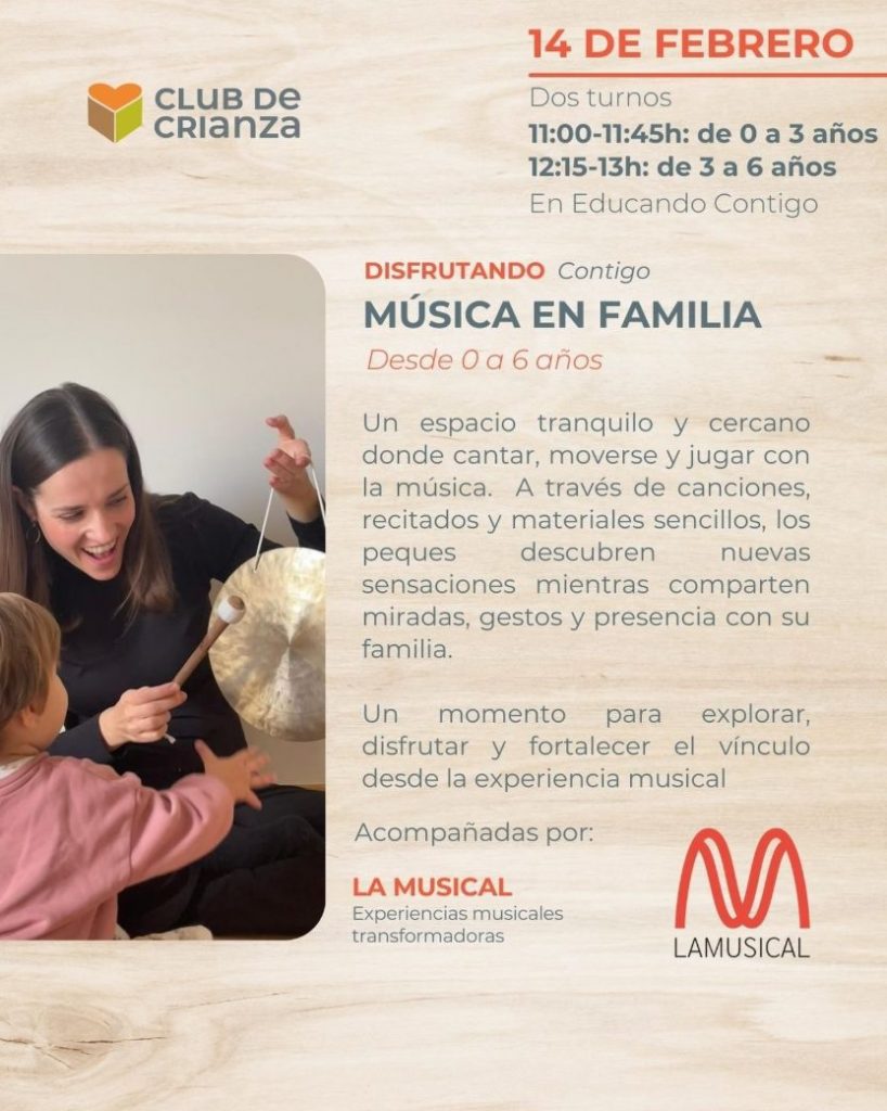 La música crea vínculos, despierta la curiosidad y abre espacios para compartir y crecer juntos. LAMUSICAL propone talleres de música en familia inspirados en la Rítmica Dalcroze y la Music Learning Theory de Edwin Gordon, donde bebés, niñas, niños y adultos pueden jugar, moverse y expresarse con libertad y emoción.
